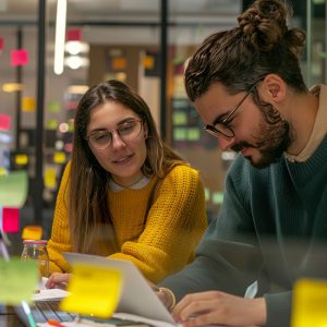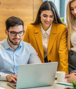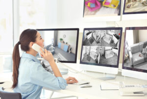Indian woman team leader guides her staff to monitor surveillance footage in monitoring room, tracking speed limits for public safety via satellite CCTV system. Operates on screen in control center.
